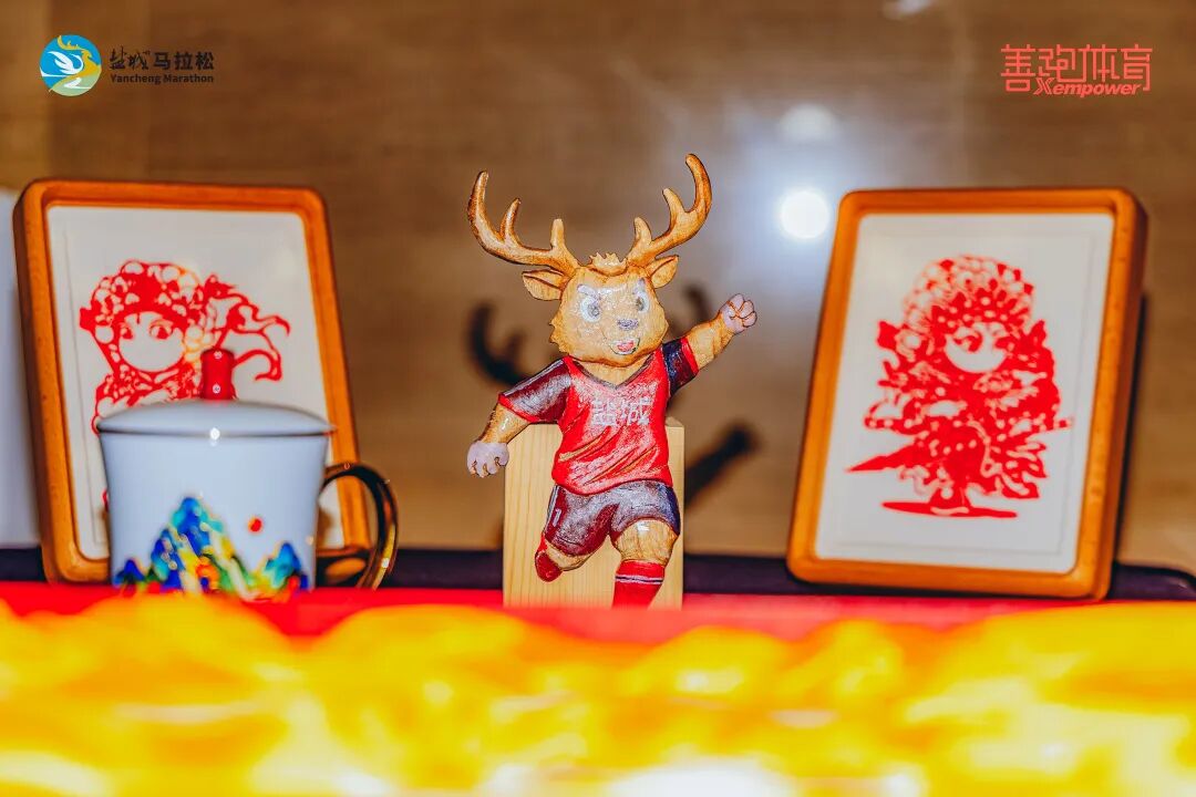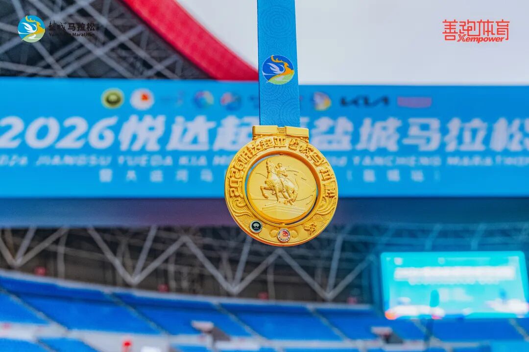 完赛奖牌采用可旋转动态结构,正面大铜马、背面麋鹿头像,深度融合盐城“四色文化”,兼具纪念意义与设计感。