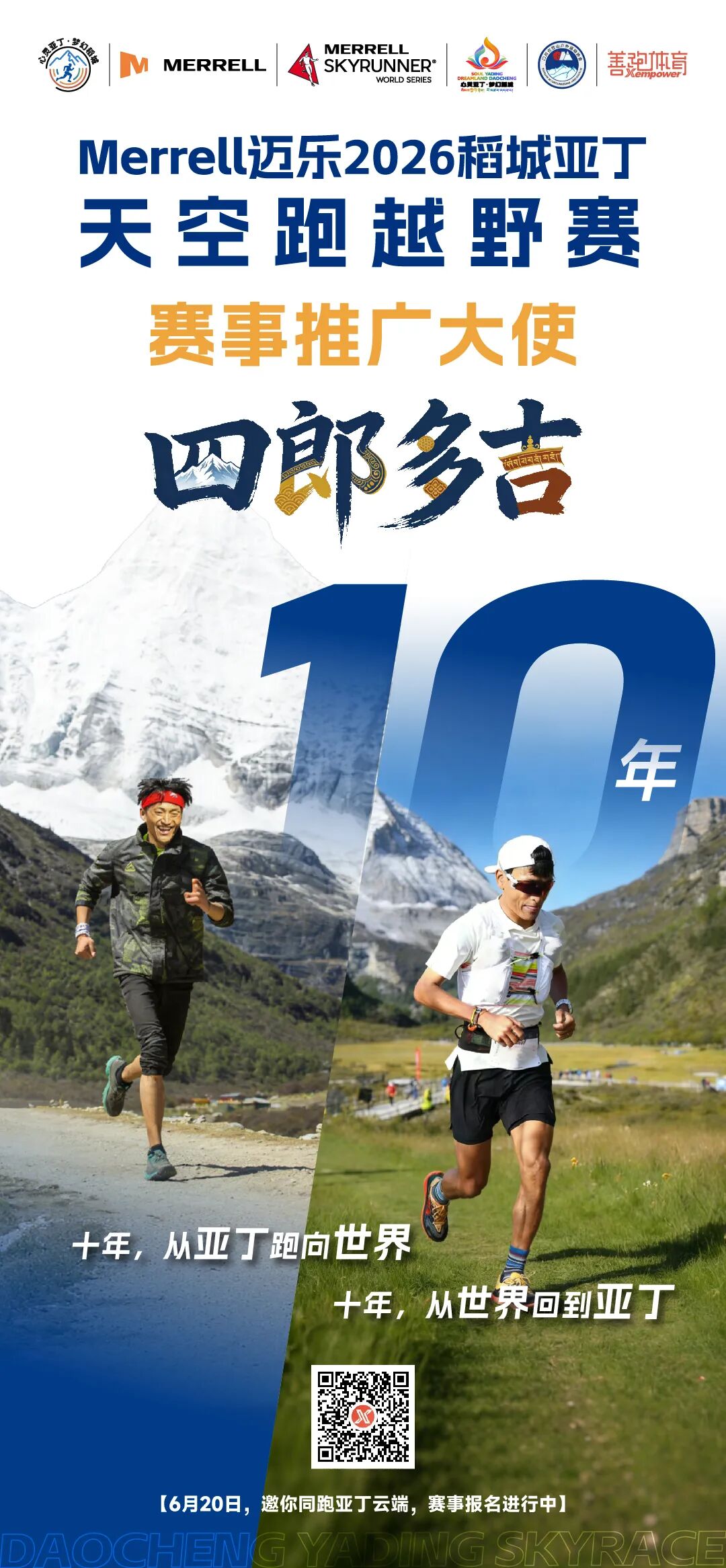 2016年,他在首届稻城腾亚丁越野赛中一战崭露头角,从此踏上越野之路。十年内,他从中国山野跑向世界赛场,成长为国内顶尖、国际知名的精英越野跑者!而这一切传奇的起点,始终是——稻城亚丁。