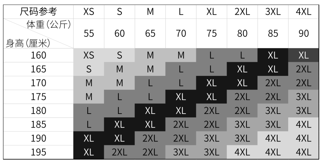 A:本届赛事的参赛T恤由匹克品牌提供,尺码均为常规型,男女同款。请根据下图的尺码表,并根据自己的体型和穿着习惯选择合适的尺码,领物时不可更换尺码。