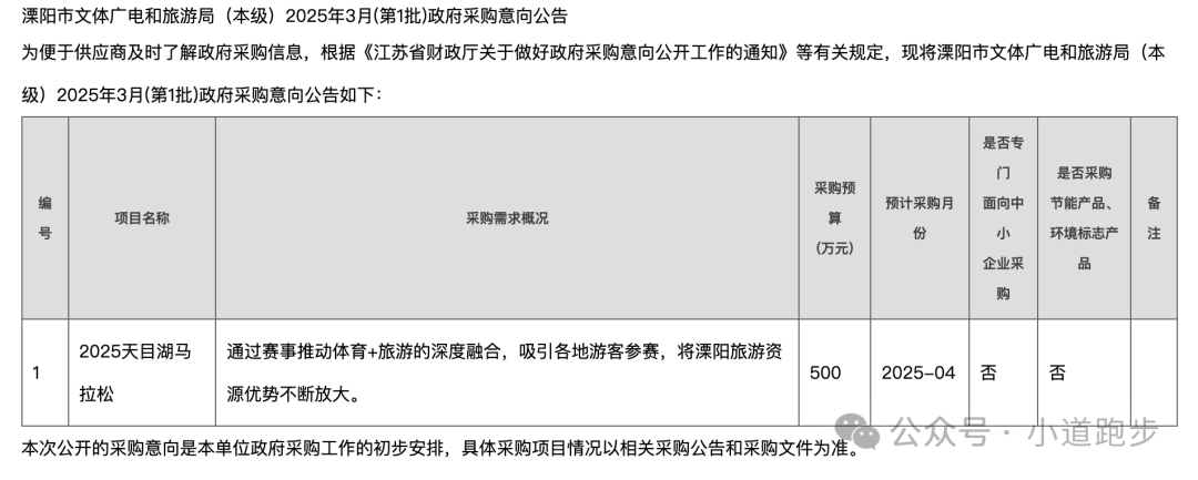 2025溧阳天目湖马拉松开启招标!预算金额为500万!预计11月份举办。