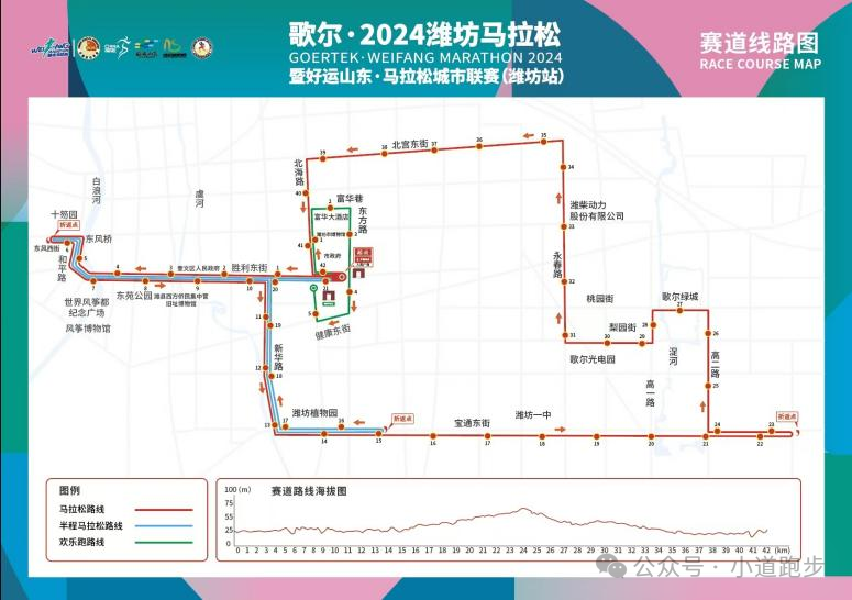 潍坊马拉松是由潍坊市人民政府等主办的马拉松赛事,自 2023 年创办以来,已成功举办 2 届。2024 年的赛事全称为歌尔·2024 潍坊马拉松暨好运山东·马拉松城市联赛(潍坊站),以 “畅跑风筝之都 悦动更好潍坊” 为主题,于 2024 年 10 月 20 日上午 7:30 在潍坊市主城区鸣枪起跑,起终点均设在潍坊市人民广场。