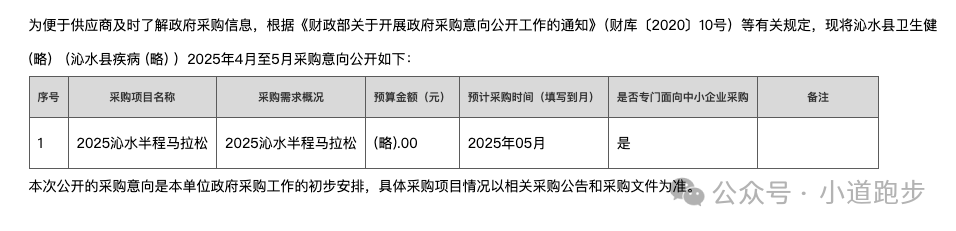 根据招标信息显示!2025沁水半程马拉松开启招标!预计6月份举办!
