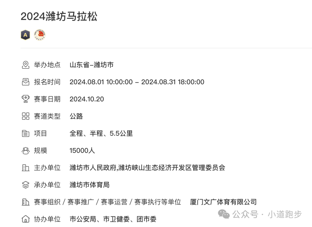 潍坊马拉松是由潍坊市人民政府等主办的马拉松赛事,自 2023 年创办以来,已成功举办 2 届。2024 年的赛事全称为歌尔·2024 潍坊马拉松暨好运山东·马拉松城市联赛(潍坊站),以 “畅跑风筝之都 悦动更好潍坊” 为主题,于 10 月 20 日上午 7:30 在潍坊市主城区鸣枪起跑,起终点均设在潍坊市人民广场。
