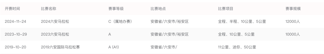 (一)男/女马拉松(42.195公里): 六安市体育中心南门(起点)→赤壁路桥→赤壁路→霍山路→西城路→淠河南路→凤凰河路→佛子岭西路→凤凰河路→淠河南路→西城路→霍山路→赤壁路→淠河南路→文华路桥→月亮岛环线→文华路桥→淠河中路→淠河北路(折返)→淠河北路→新安大桥→滨河大道(折返)→滨河大道→六安市体育中心南门(终点)。