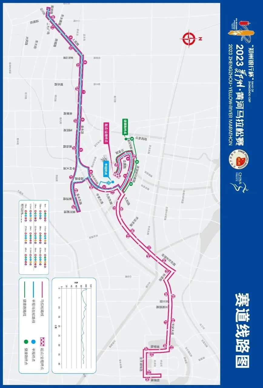 (四)沿黄河旅游公路健康跑赛道。起点设在郑州黄河国家湿地公园——黄河大坝路——黄河观光路——S312——天河路——天河北路——至南裹头广场终点。