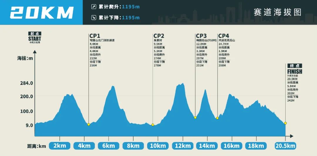 赛道全线穿越穹窿山自然风景区,沿途将经过兵圣孙武像、百丈泉、观音殿、香山草庵等游览景点。20KM的距离难度适中,适合想尝试越野跑、有一定跑步基础的跑步爱好者。