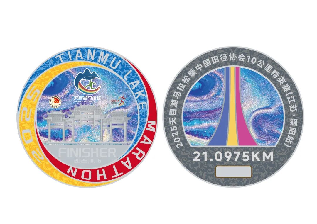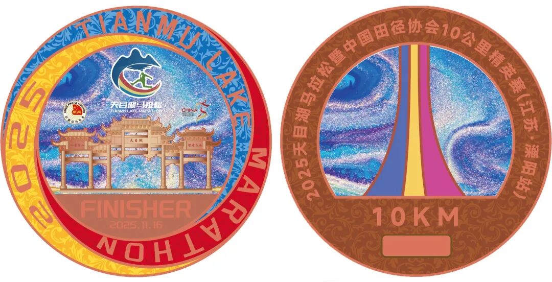 *2025天目湖马拉松正在申请中国田协A1类认证,相关logo仅作奖牌设计效果展示使用。