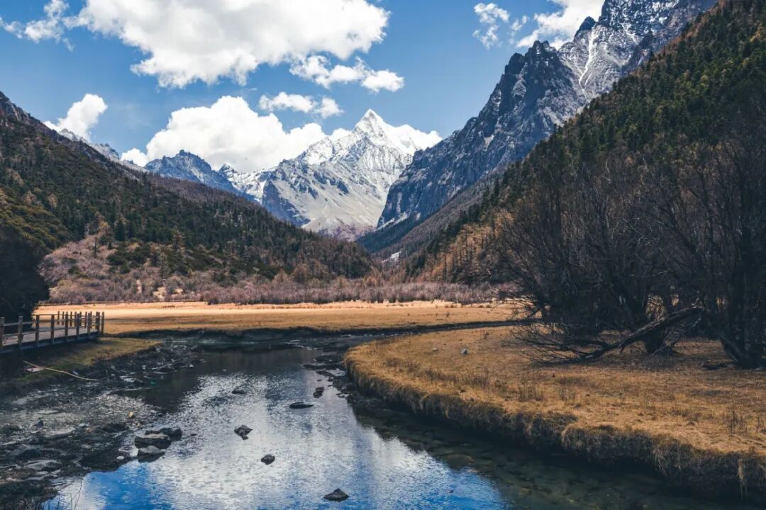 秋日童话般的稻城亚丁,洛绒牛场的金色草甸随风轻舞,川西高原上最精华的风光与人文都汇集在此。
