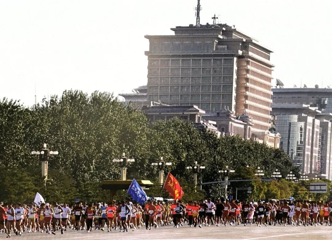 1981年秋,改革的春风拂过古都城墙,北京马拉松首次到来,奔跑的足迹第一次印上长安街。