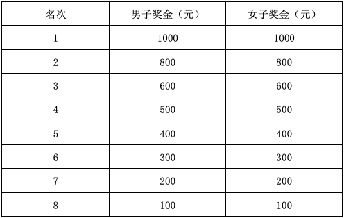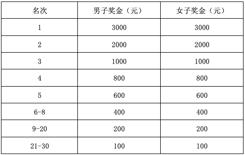 本次赛事在健康跑组别男女选手中各录取前8名运动员(均以净计时成绩为准),分别获得奖金(见下表)。