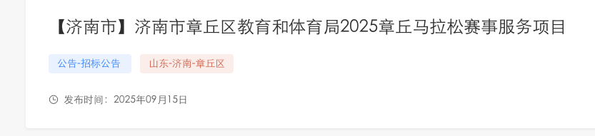2025章丘马拉松定档11月9日,报名即将开启!目前正在招标中!