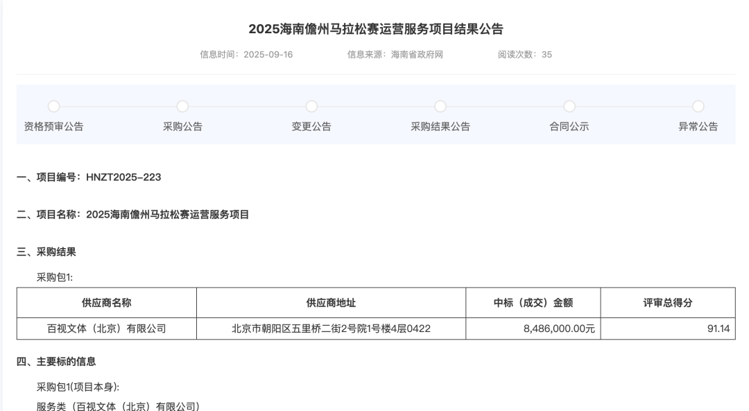 2025儋州马拉松定档12月21日!招标完成!北京百世文体中标!