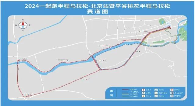半程马拉松 :北京金海湖国际会展中心出发,沿平蓟路西行,经顺平路、胡黑路右转至泃河桥折返,回顺平路西行,熊南路向北至河北岸沿河路东行至金海南路、新平蓟路、平蓟路东行,终点为北京金海湖国际会展中心。