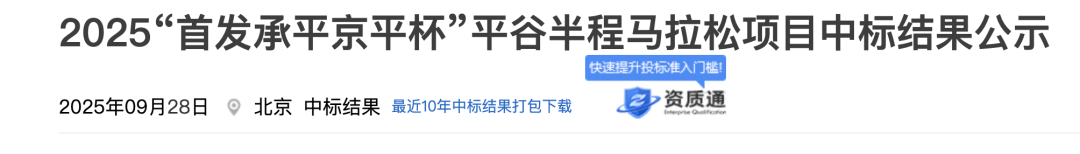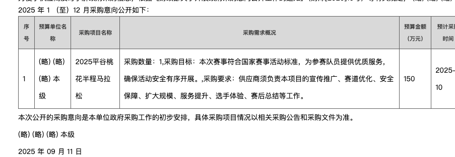 2025“首发承平京平杯”平谷半程马拉松项目中标候选人公示