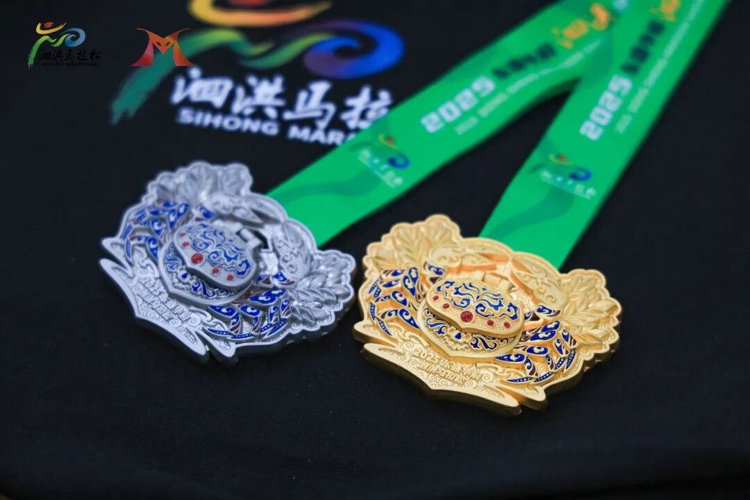 极具新意的是今年的完赛奖牌「蟹逅荣耀」,继续以泗洪标志性元素「洪泽湖大闸蟹」为主体核心,蟹壳表面精雕细琢出稻穗纹、水波纹等地域符号,更令人惊喜的是奖牌创新采用翻盖结构,打开蟹壳后可置入专属姓名贴片,让每一枚奖牌都成为独一无二的荣耀载体,承载着跑者的汗水与珍贵回忆,真正实现「一人一牌,专属荣耀」。