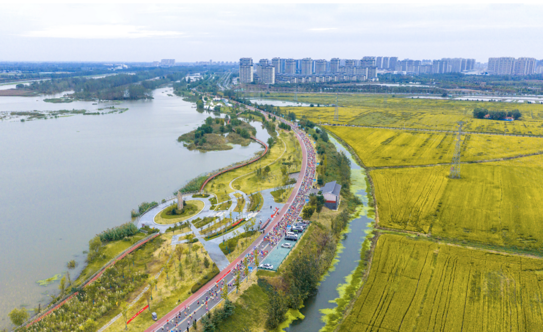 从城市街景到湿地风光,从稻浪翻滚到湖湾如画,2025泗马赛道依旧是那一条「生态水美」PB赛道。跑者们穿行于新老濉河之畔、百里湖湾蟹田之间、柳山乡村稻香之野、洪泽湖湿地绿意之中,每一步都是与自然的亲密接触,每一景皆为心灵的深度放松。