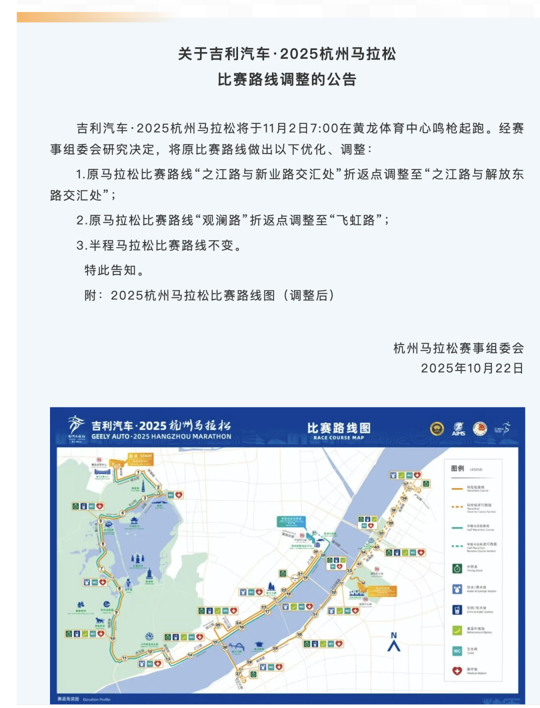 2025杭州马拉松对赛事路线进行调整,公布如下:
