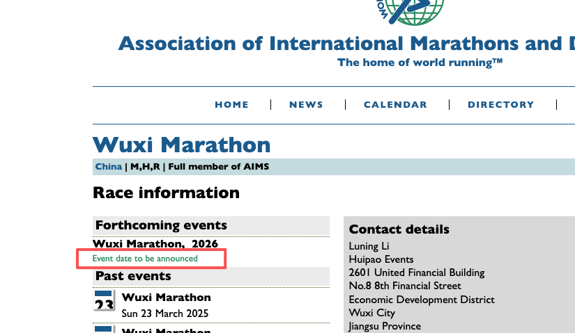 2026无锡马拉松赛事已经公布在aims官方网站上目前举办时间还是还是待定状态!据透露2026无锡马拉预计在3月22日举办(实际举办时间以官方公布为准)!去年举办时间为3月23日、报名时间是2024年12月底!2026年无锡马拉松也会取消欢乐跑!全程马拉松和半程马拉松赛事规模可能会有所增加!2026年还会撞期武汉马拉松?话说撞期的话对大众跑者还是好的!