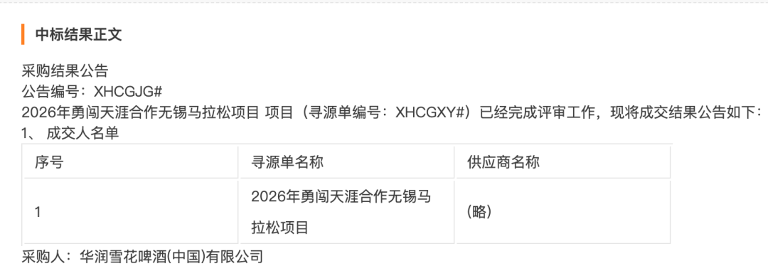 2026无锡马拉松报名暂未开启,但是很多赞助商已经开始招标和准备!雪花啤酒是2026年赞助商,已经开启招标!