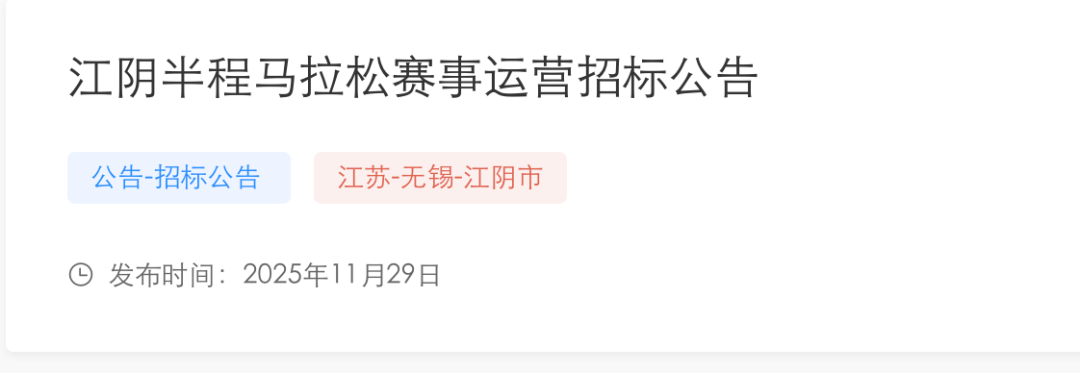 2026无锡江阴半程马拉松开启招标!赛事预计定档4月中旬!