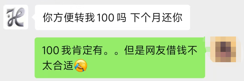• 谈钱伤感情,但谈钱最见人品:无论对方在群里多么活跃,无论装备多么昂贵,一旦涉及金钱借贷,请立即拉响警报