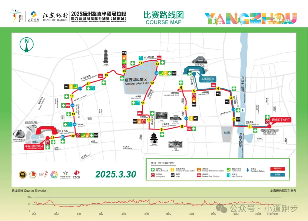 赛事路线(2025):市民中心广场(起点)-文昌东路-运河北路-万福西路-高桥路-泰州路-文昌中路-汶河北路-盐阜西路-瘦西湖路-平山堂东路-平山堂西路-邗江北路-文昌西路(国泰大厦)(终点)