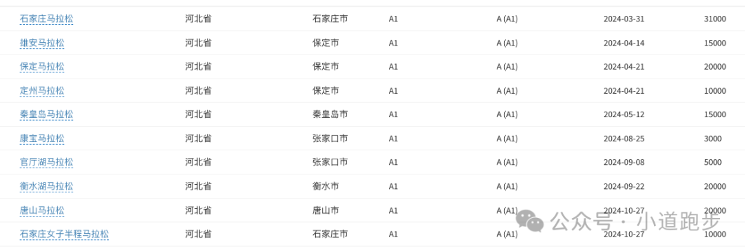2024年河北省A1赛事一共10场(2025可能会多)其中可能包含的马拉松会有: