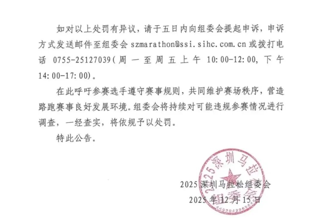 关于对2025深圳马拉松违规参赛人员的