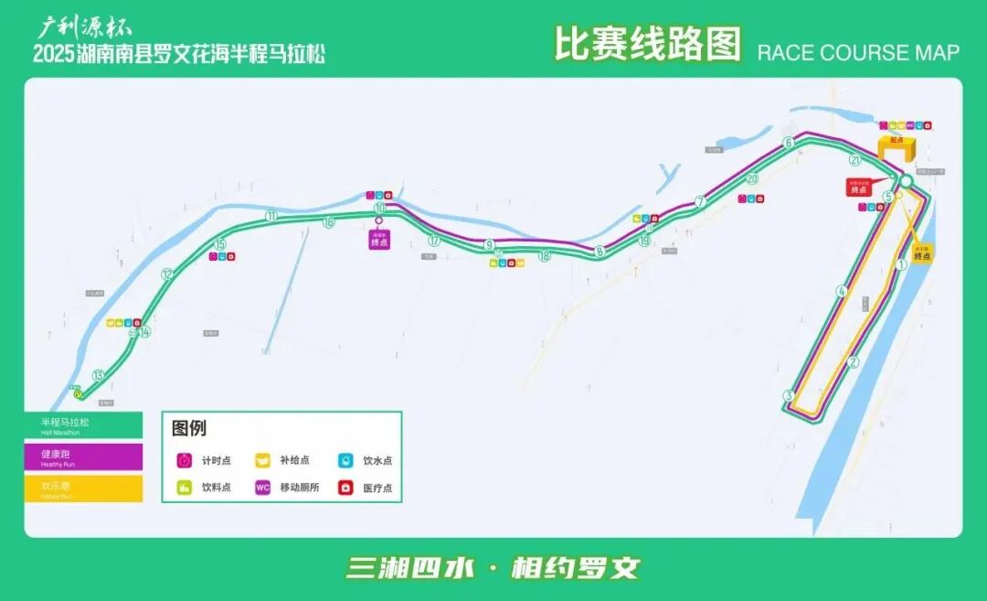洞庭之心广场(起点)—洞庭之心广场前道路—藕池东支大堤—罗文村环村路—罗文村中心路—洞庭之心广场(终点)