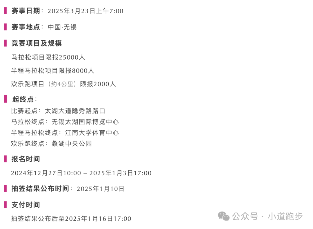 报名人数创新高: 2025年无锡马拉松总报名人数达到429,447人,刷新了赛事纪录,其中全程马拉松项目报名人数为221,509人。