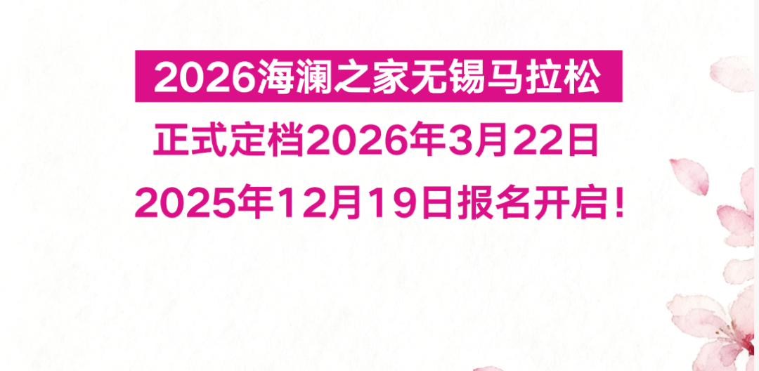 12月19日(今日)上午10:00,2026海澜之家无锡马拉松报名即将开启!