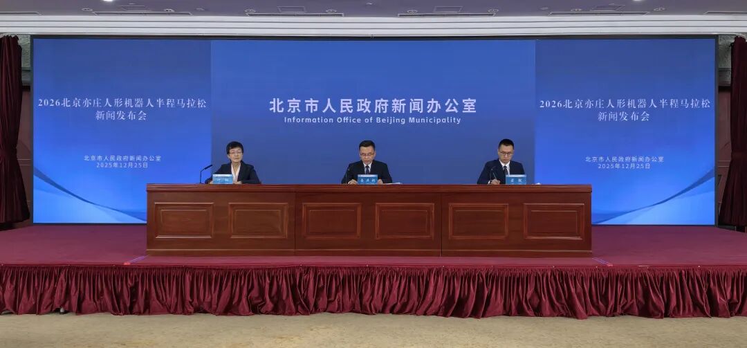 12月25日,北京市人民政府新闻办公室举行2026北京亦庄人形机器人半程马拉松新闻发布会。