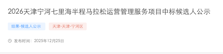 2026天津宁河区七里海半程马拉松定档4月,预计A1认证!目前已经选定中标候选人!