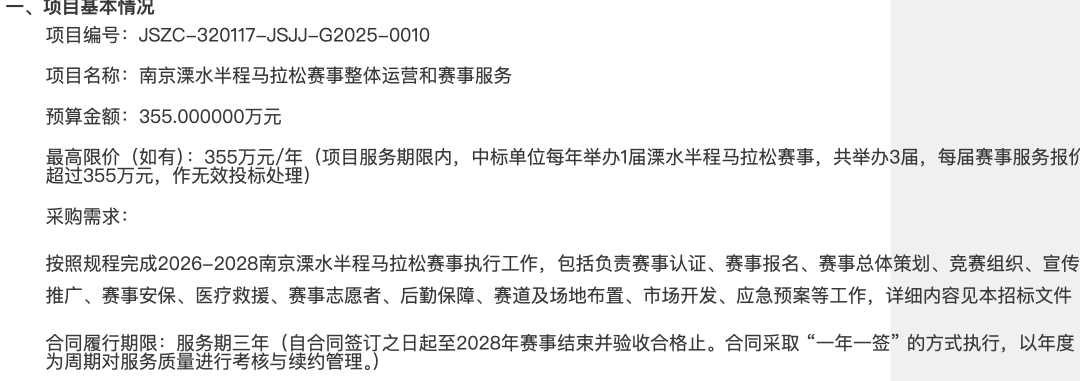 2026南京溧水半程马拉松招标完成,招标信息如下: