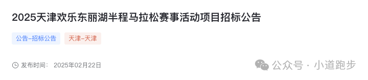 据招标网站显示2025天津欢乐东丽湖半程马拉松开启招标!预计4月举办!