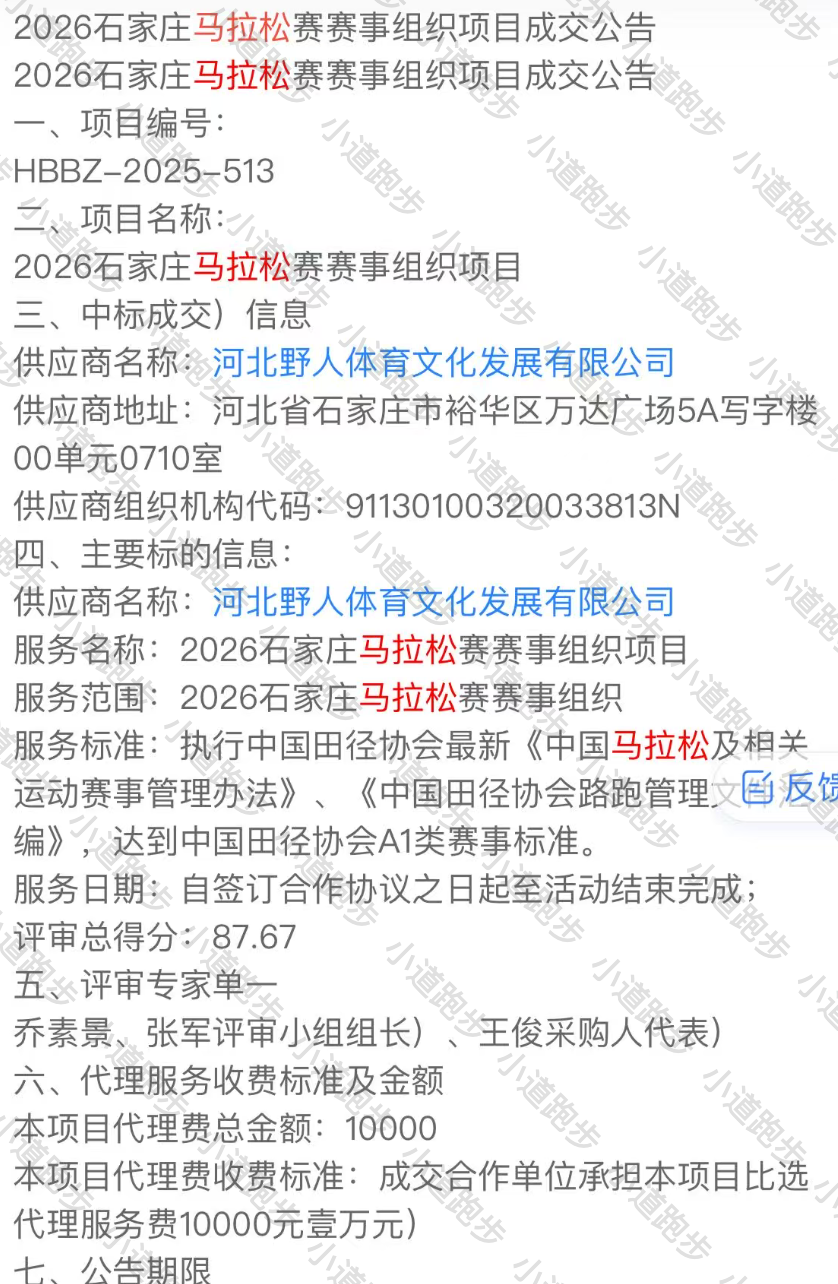 2026石家庄马拉松已经招标完成,举办时间为3月29日!