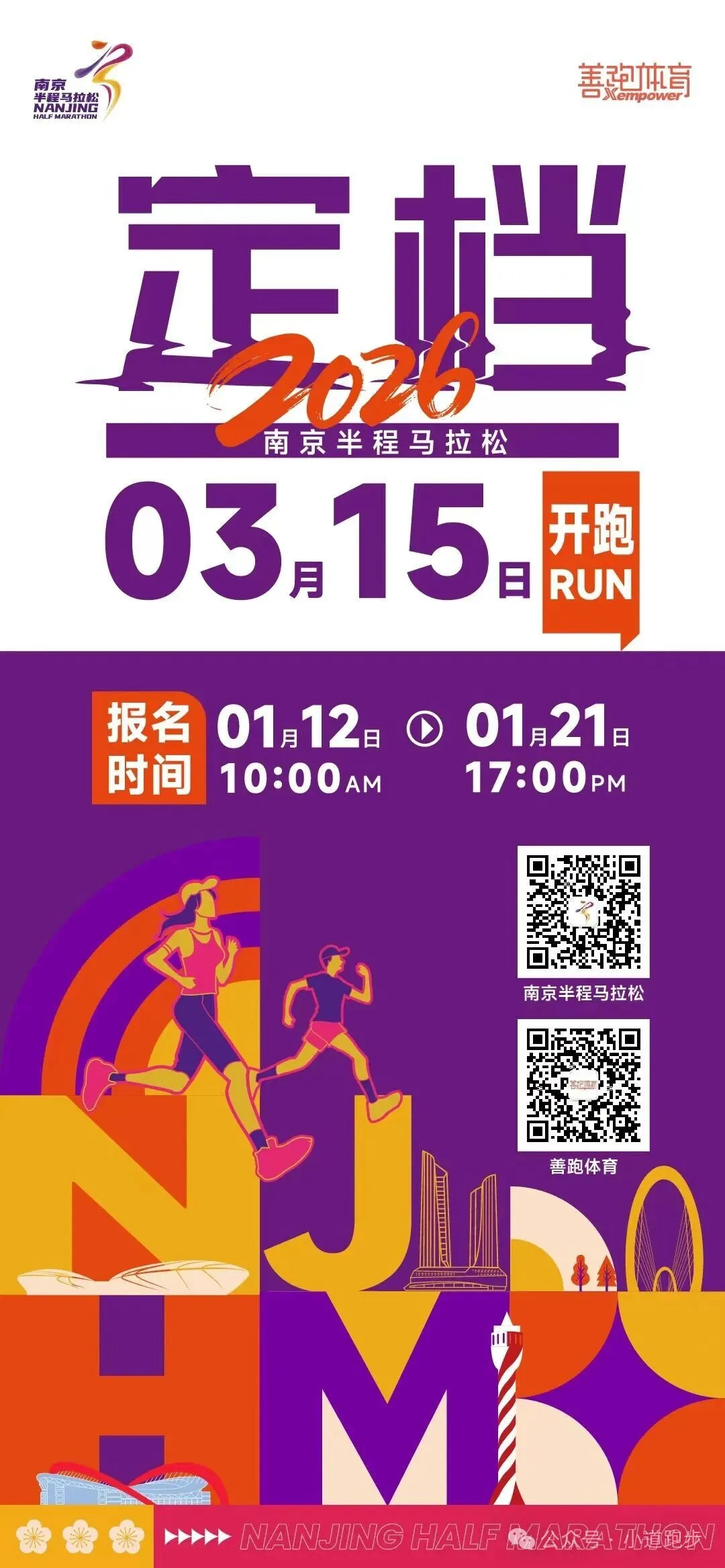 南京奥体中心东门(起点)–江东中路–江山大街辅路–江山大街–南京眼步行桥–环岛东路–江堤路–环岛东路–桃源街–环岛西路–江堤路–环岛西路–风林街–梅子洲路–江心洲梅子洲路(江豚音乐节大草坪附近)(终点),以下线路图为2026南京半程马拉松全新线路及线路图: