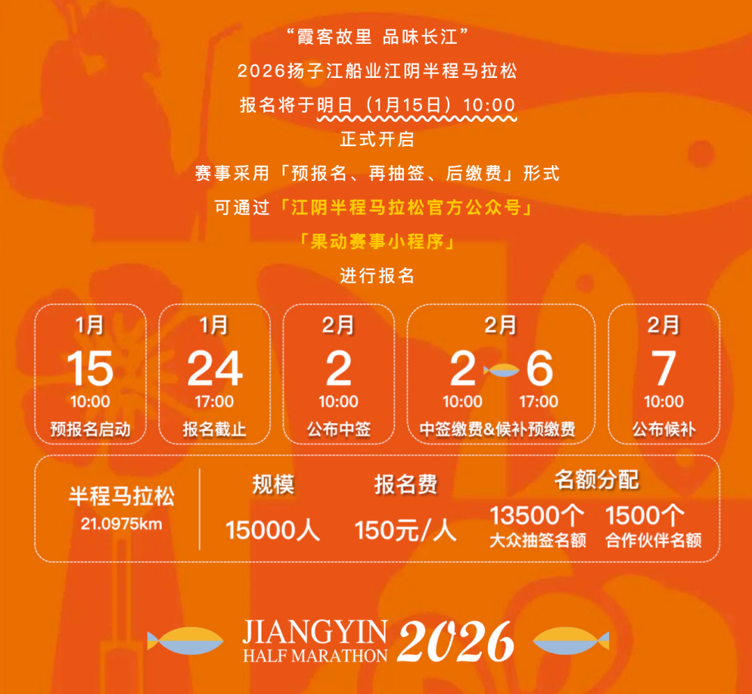2026 江阴半程马拉松报名开启!时间表、抽签规则、路线特点一次说清