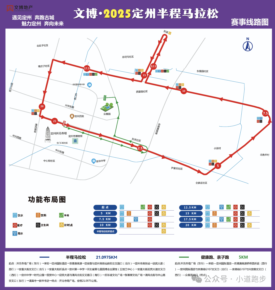 (二)健康跑、亲子跑路线(5公里):开元寺塔广场(起点)(东行)—宋街—定州国际酒店—京港澳高速桥桥西折返(西行)—定州国际酒店与京港线G107交叉口(北行)—京港线G107与兴定路交叉口(西行)—众春园北门(终点)。