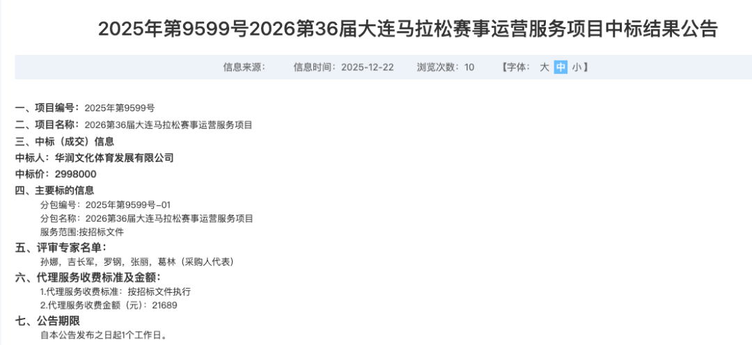 采购需求:为2026第36届大连马拉松赛事采购一家赛事运营单位(详见第三章项目需要及技术要求)。