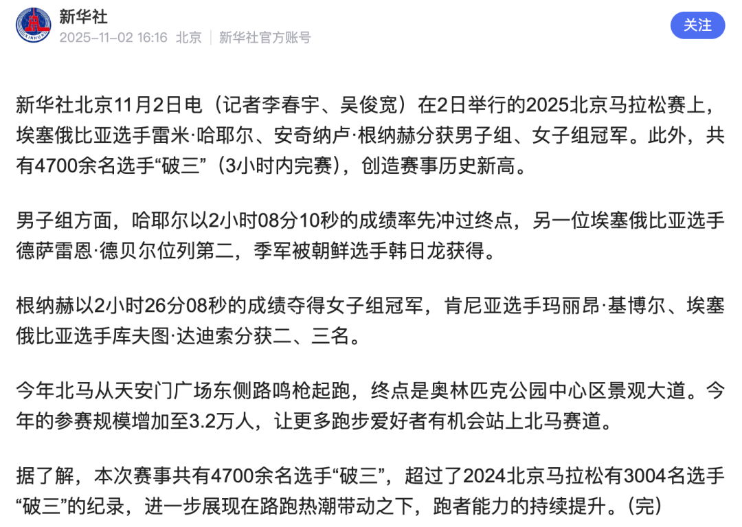 北马路线历史悠久,旨在通过奔跑展现北京“古都风采”与“现代活力”。