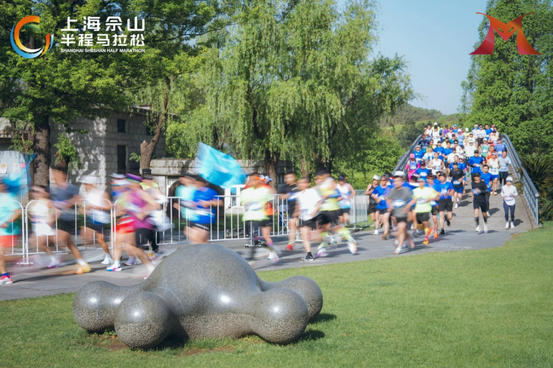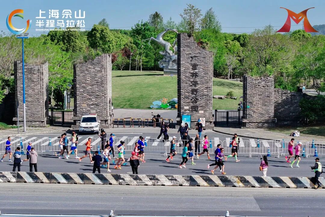 从欢乐谷鸣枪起跑,赛道一路向佘山腹地延伸。佘山国家森林公园的层叠林海、辰山植物园的自然肌理、广富林遗址的人文景观,在21.0975公里中依次铺展。