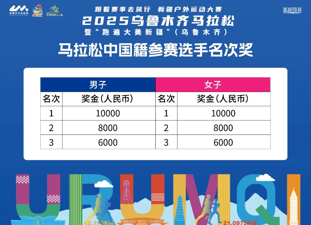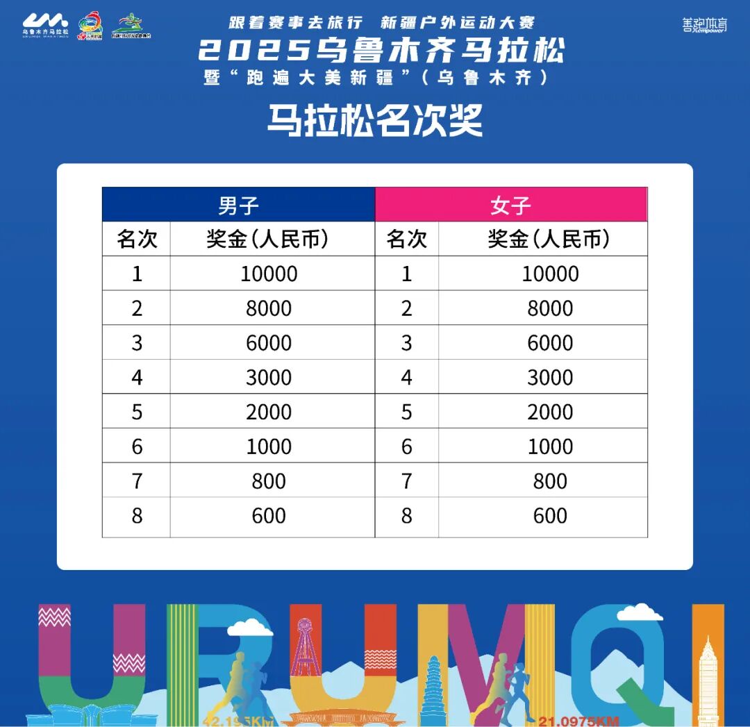 本届乌鲁木齐马拉松赛事奖金池聚焦「竞技荣誉+本土激励」双重维度,设置三大奖项类别马拉松名次奖+马拉松中国籍参赛选手名次奖+半程马拉松名次奖」三类奖项