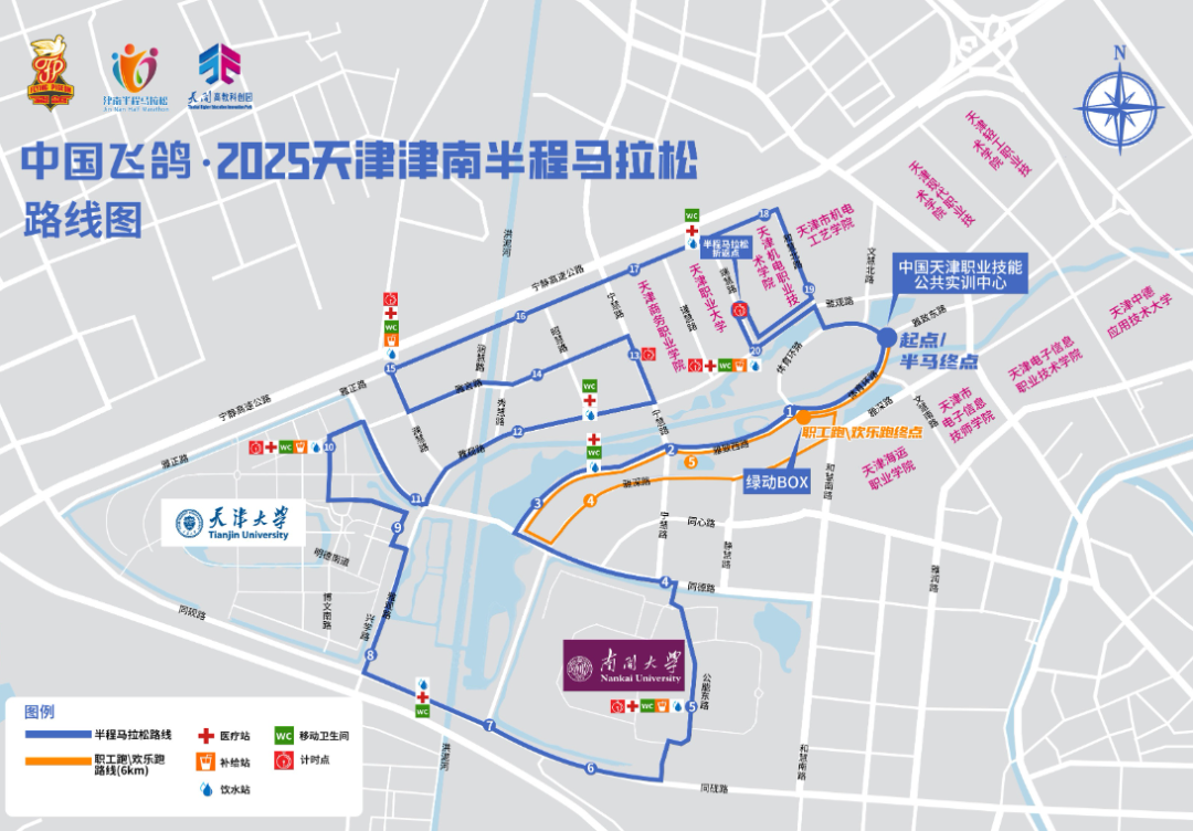 赛道在跑进南开大学、天津大学的基础上,将沿着美丽的校际联络线跑进天津机电职业技术学院、天津职业大学、天津商务职业学院。