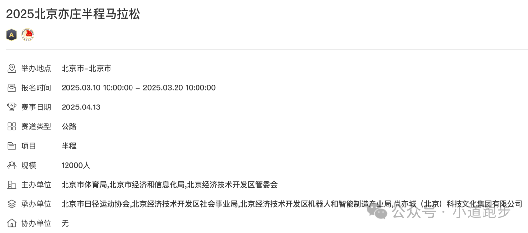 更多2025北京亦庄半程马拉松消息关注【小道跑步】后续推送:
